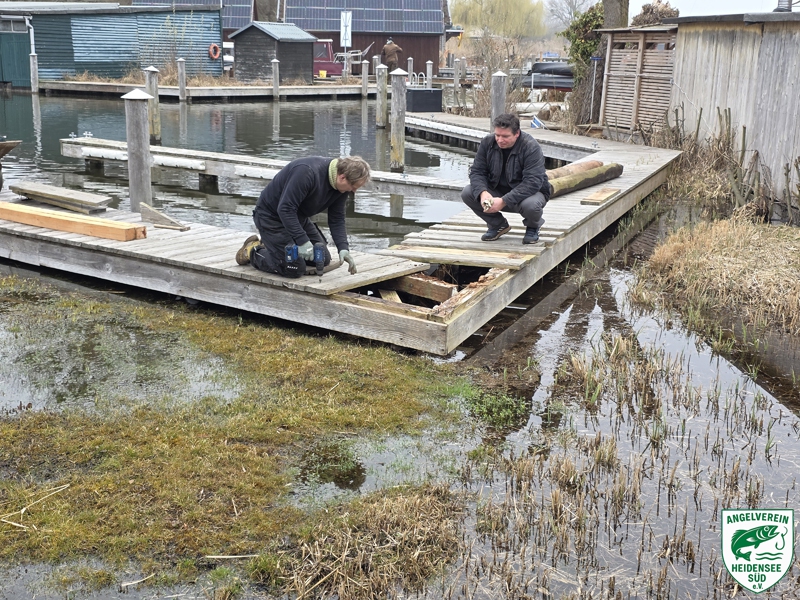 Am 21.03.2026 fand unser erster Arbeitseinsatz im Frühjahr statt. Bei kühlem aber trockenen Wetter trafen sich unsere Vereinsmitglieder in der Anlage am Heidensee um die ersten Arbeitsstunden des Jahres abzuleisten. Hauptarbeiten waren das Beräumen der Grünflächen von Totholz, das Entleeren und der Neuaufbau von Komposthaufen, Anbringen eines Anfahrschutzes für unseren Wasseruhren-Schacht, Säubern der Stege an den Außenliegeplätzen, die Stegreparatur des Steges an den Liegeplätzen Block 3, Anbringen einer Hangstütze am Weg Block 9, Entsorgung der übriggebliebenen Pfähle von der Stegsanierung Block 2 sowie die Wiederinbetriebnahme der Wasserversorgung auf dem Vereinsgelände und die Öffnung der Toiletten im Vereinsgebäude. Nach getaner Arbeit trafen sich dann alle wieder traditionell zu Bratwurst und einem kühlen Getränk, um den Tag gemütlich ausklingen zu lassen. Danke an Alle für eure tatkräftige Arbeit.