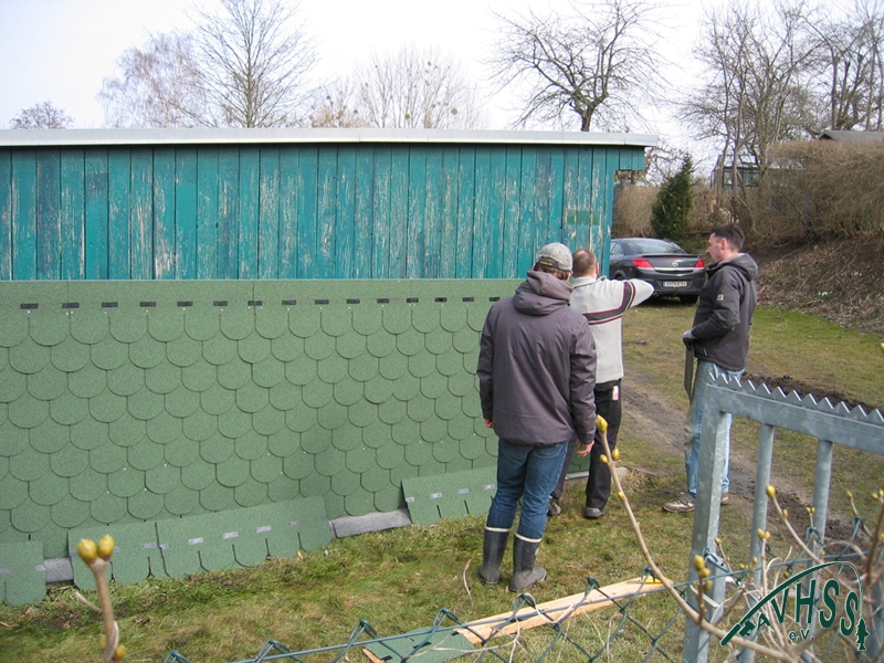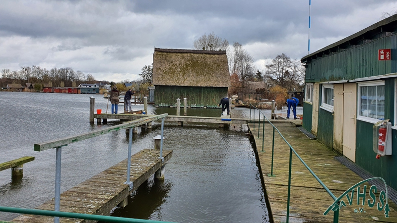 Ein weiterer Teilabschnitt unserer Sanierungsarbeiten auf dem Vereinsgelände ist nun abgeschlossen. Die Giebelseiten der Blöcke 1, 6 und 9 wurden abgerammt und damit das drohende Abrutschen ins Hafenbecken verhindert. Außerdem wurden weitere Feuerwehr-Wasserentnahmestellen im Hafenbecken installiert, deren Einsatz wir hoffentlich niemals erleben werden.